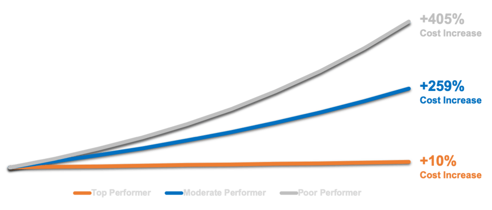 Not for everyone. Top performers get annual cost increases of just 0%-2%. That's 8%-13% less than the average company.