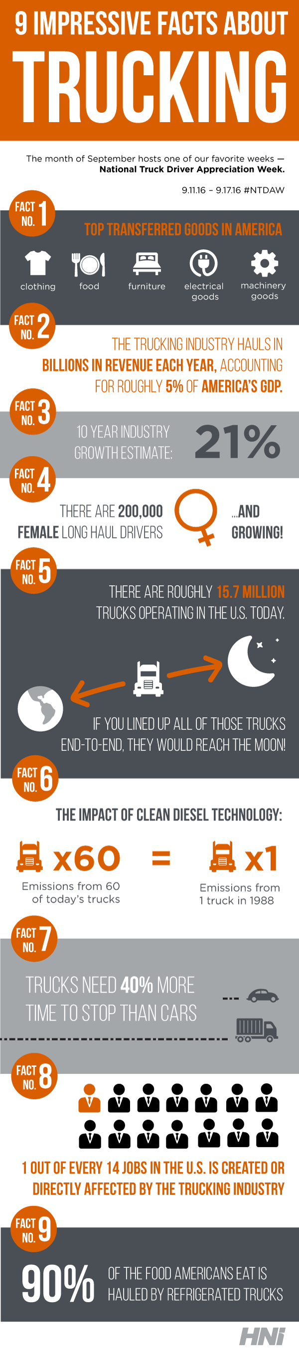 Overall, trucking is roughly a $680 billion industry employing over 7 million employees. This crucial industry touches the operations of just about every industry in America, making it truly the backbone of our nation. If that isn't enough to get you excited about this heavy duty industry, here's 9 cool facts about trucking.