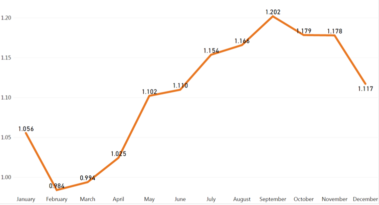 - September is the deadliest month per million miles of driving, at 1.202 deaths