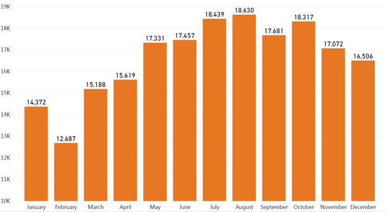 - July is the second deadliest month, at 18,439 deaths between 2010 and 2015.
