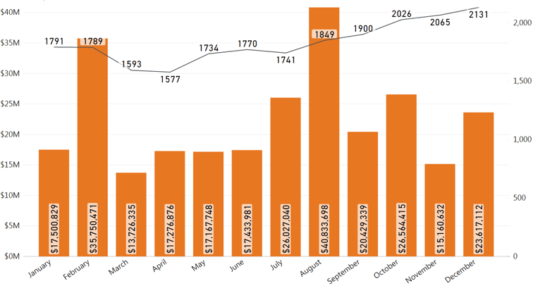 - August was by far the most severe in terms of incurred losses (14% more than the next highest month)